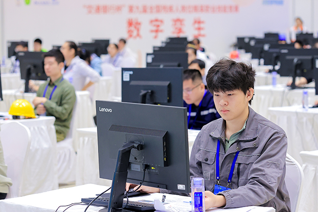 图为天津选手宋内博参加“数字孪生”项目竞赛